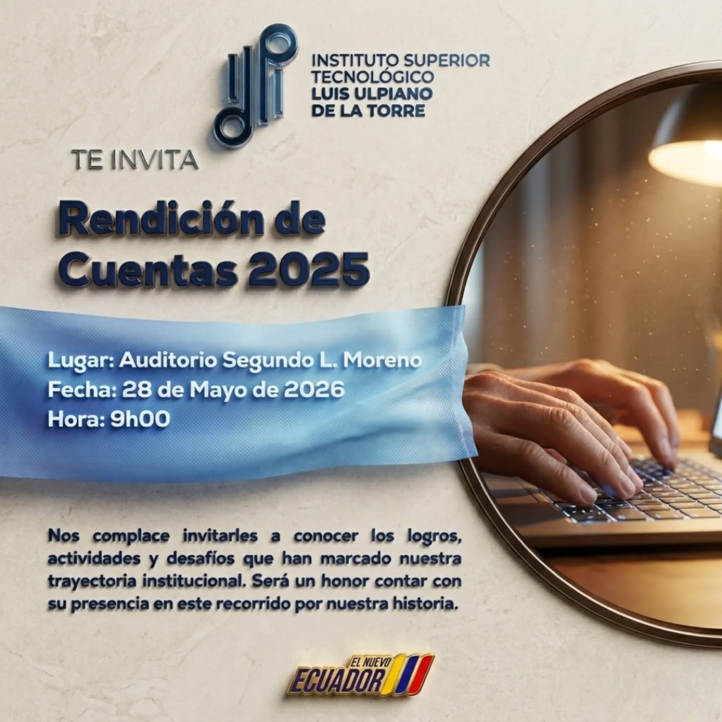 Como parte del cumplimiento a la ley de transparencia, el Instituto Superior Tecnológico Luis Ulpiano De La Torre pone en conocimiento los siguientes informes y documentos institucionales.